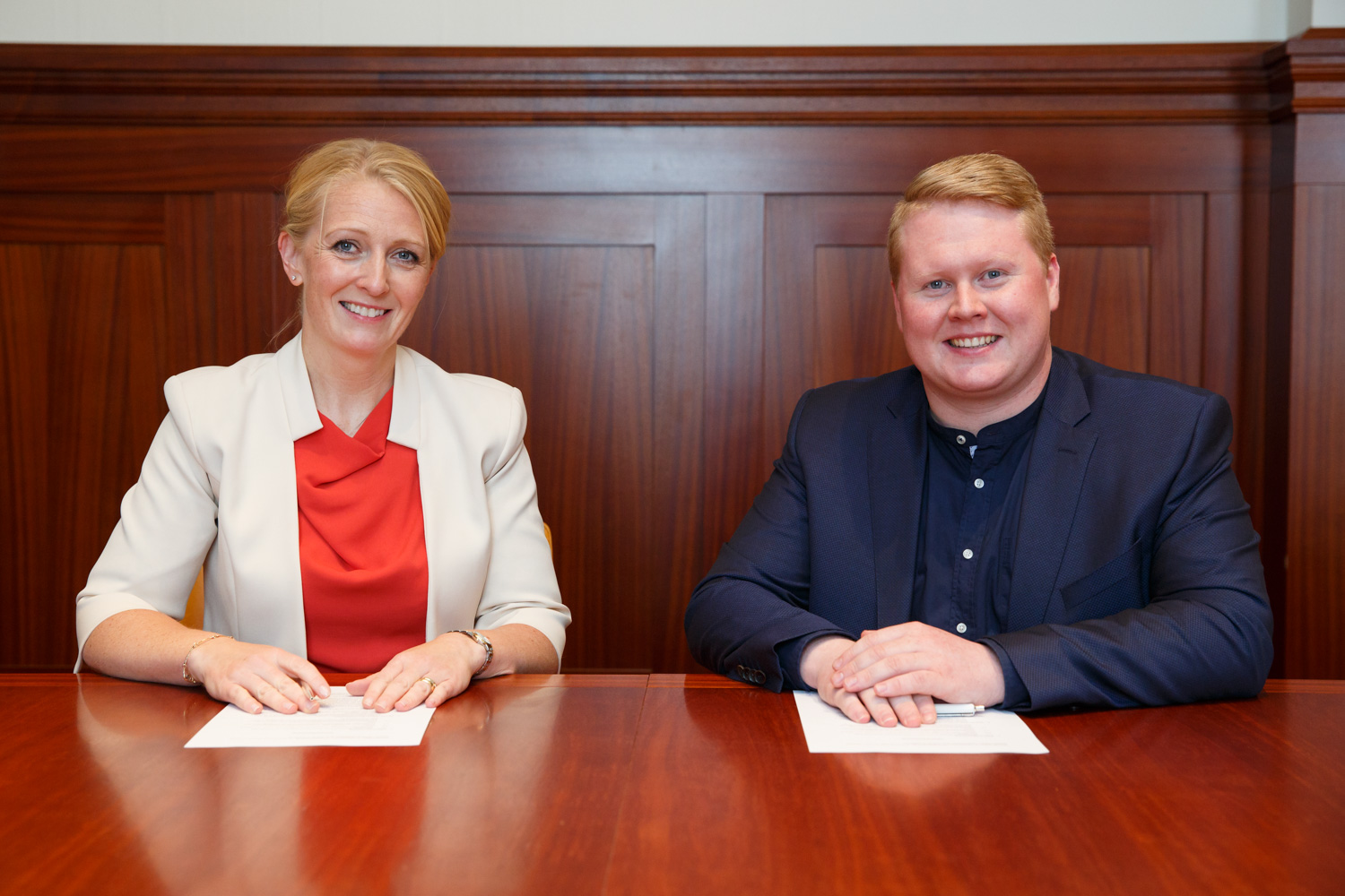 Á myndinni eru Lilja Björk Einarsdóttir, bankastjóri Landsbankans, og Gunnlaugur Bragi Björnsson, gjaldkeri Hinsegin daga, við undirritun samstarfssamningsins.