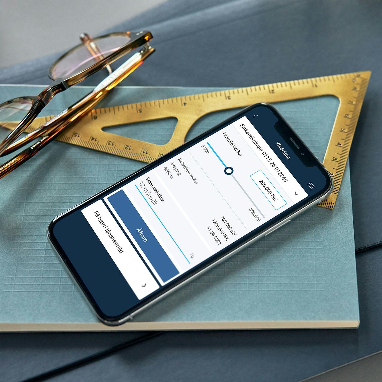 Þú sérð strax hversu háa heimild þú getur fengið og getur breytt eða framlengt yfirdráttinn í appinu eða netbankanum.