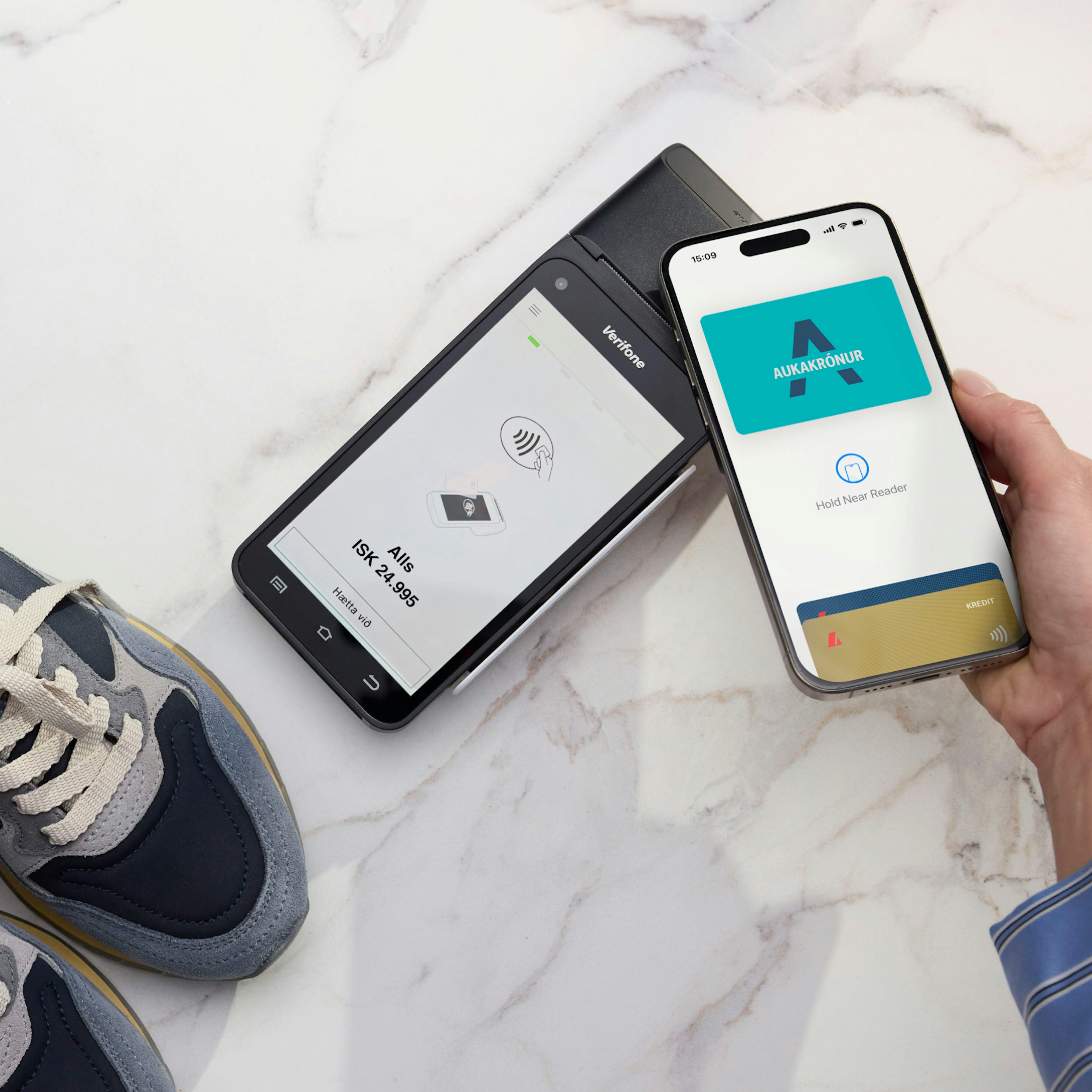Contactless payments with the card itself are convenient for amounts of ISK 7,500 or less. Place your card against a card reader and wait for confirmation.