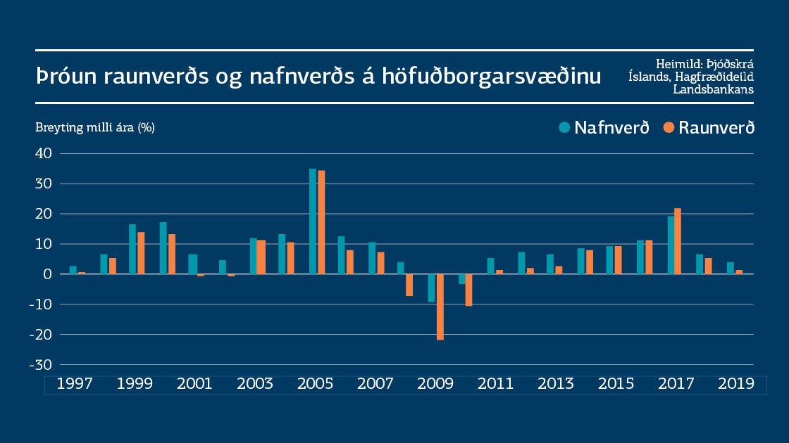 Íbúðaverð á höfuðborgarsvæðinu hækkaði um 3,5% milli ára í fyrra. Raunverð hækkaði einungis um 0,9%. Stöðugleiki á íbúðamarkaði hefur ekki verið meiri í áraraðir.