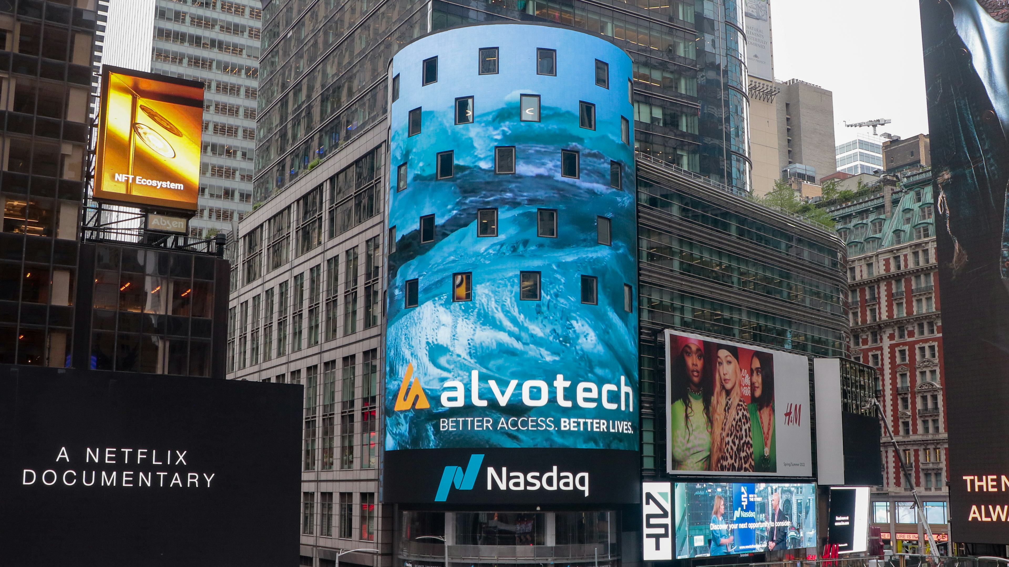 Hlutabréf í Alvotech voru tekin til viðskipta í kauphöll Nasdaq í New York í dag.