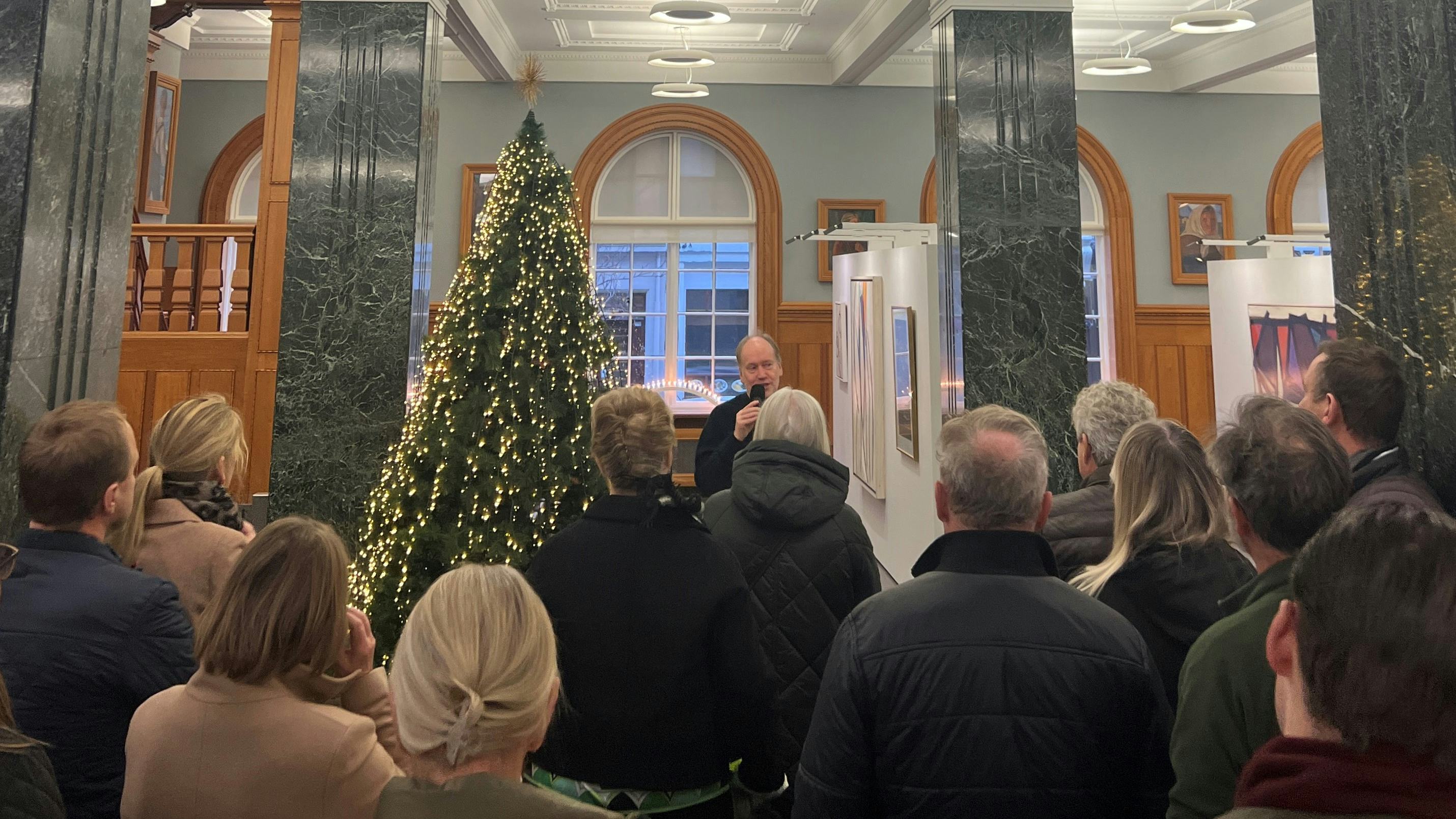 Mikill áhugi var á sögugöngum um Austurstræti 11 síðastliðinn sunnudag, 27. nóvember. Boðið var upp á tvær göngur og var fullt í þær báðar og rúmlega það.