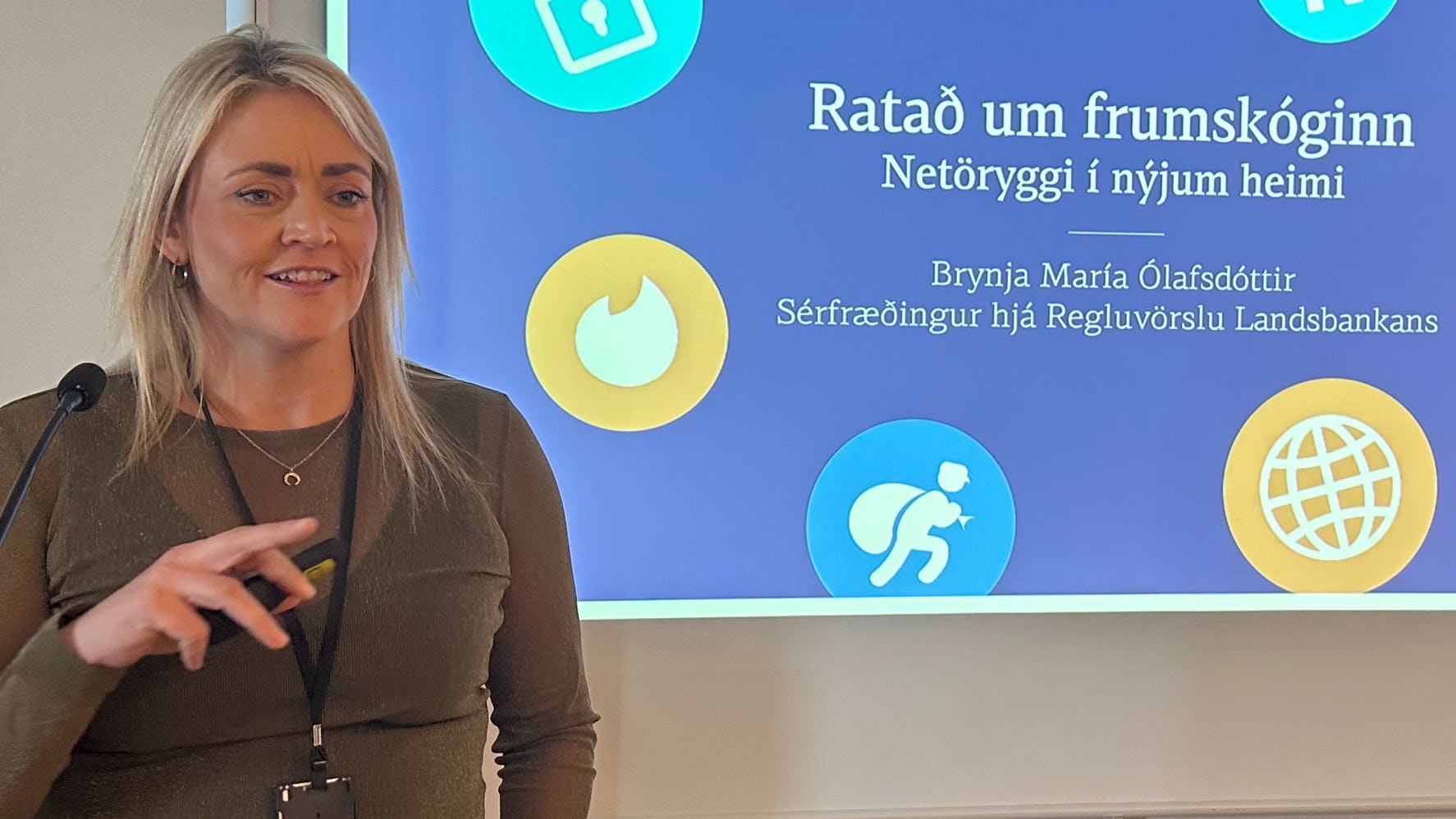 Brynja María Ólafsdóttir, sérfræðingur hjá Regluvörslu, ræddi hvernig rata má um frumskóginn sem netið getur verið og Markús Már Þorgeirsson, hópstjóri hjá Vefdeild, fór yfir aðgengi að appinu og vef bankans.