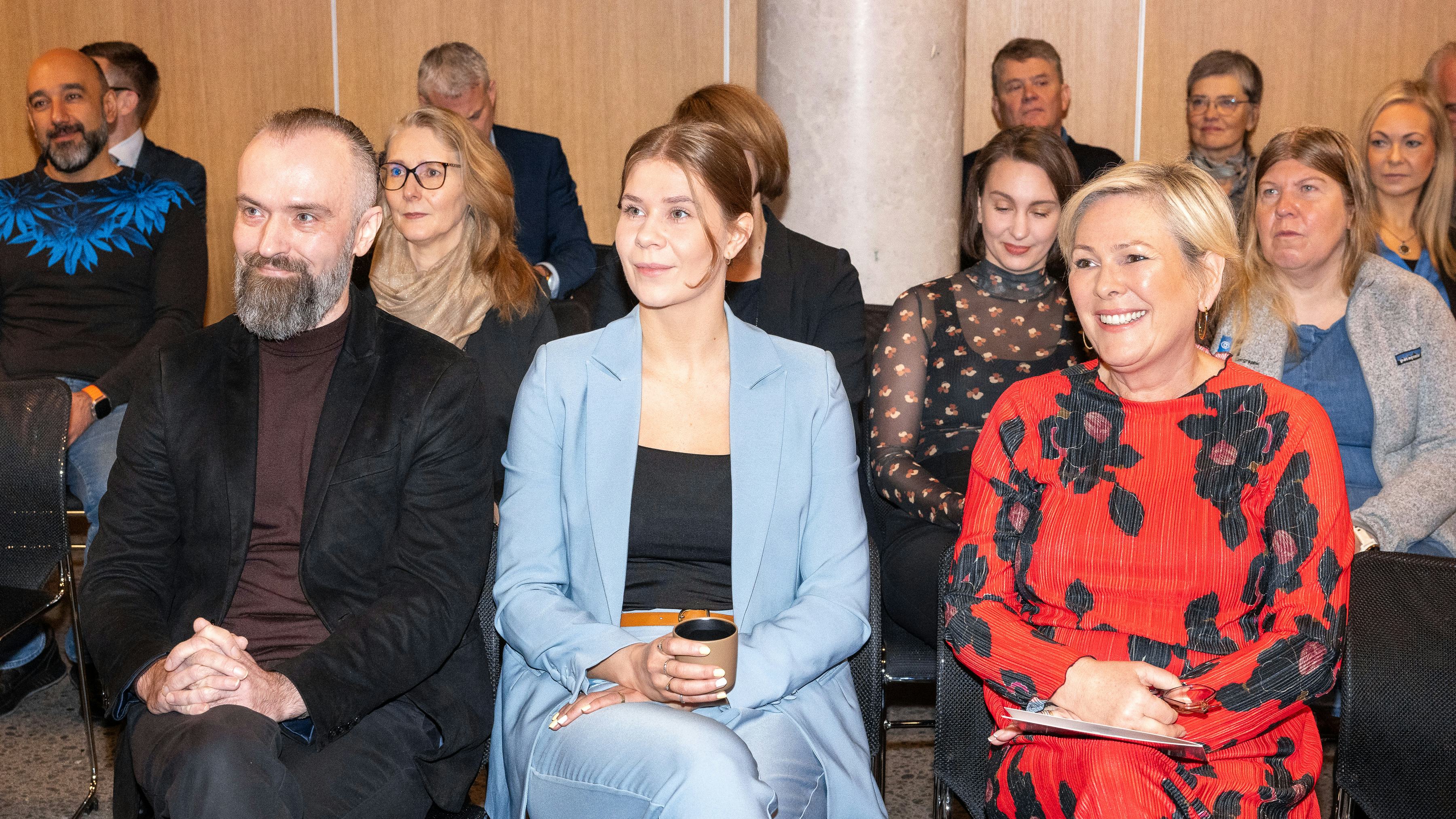 Á myndinni sem er efst í þessari frétt eru: Vilhelm Már Þorsteinsson, Halla Tómasdóttir forseti Íslands, Jón Atli Benediktsson, Jón Þ. Sigurgeirsson, Lilja B. Einarsdóttir, Sóllilja Bjarnadóttir, Aysan Safavi, Adam Janusz Switala og Vigdís Sif Hrafnkelsdóttir.