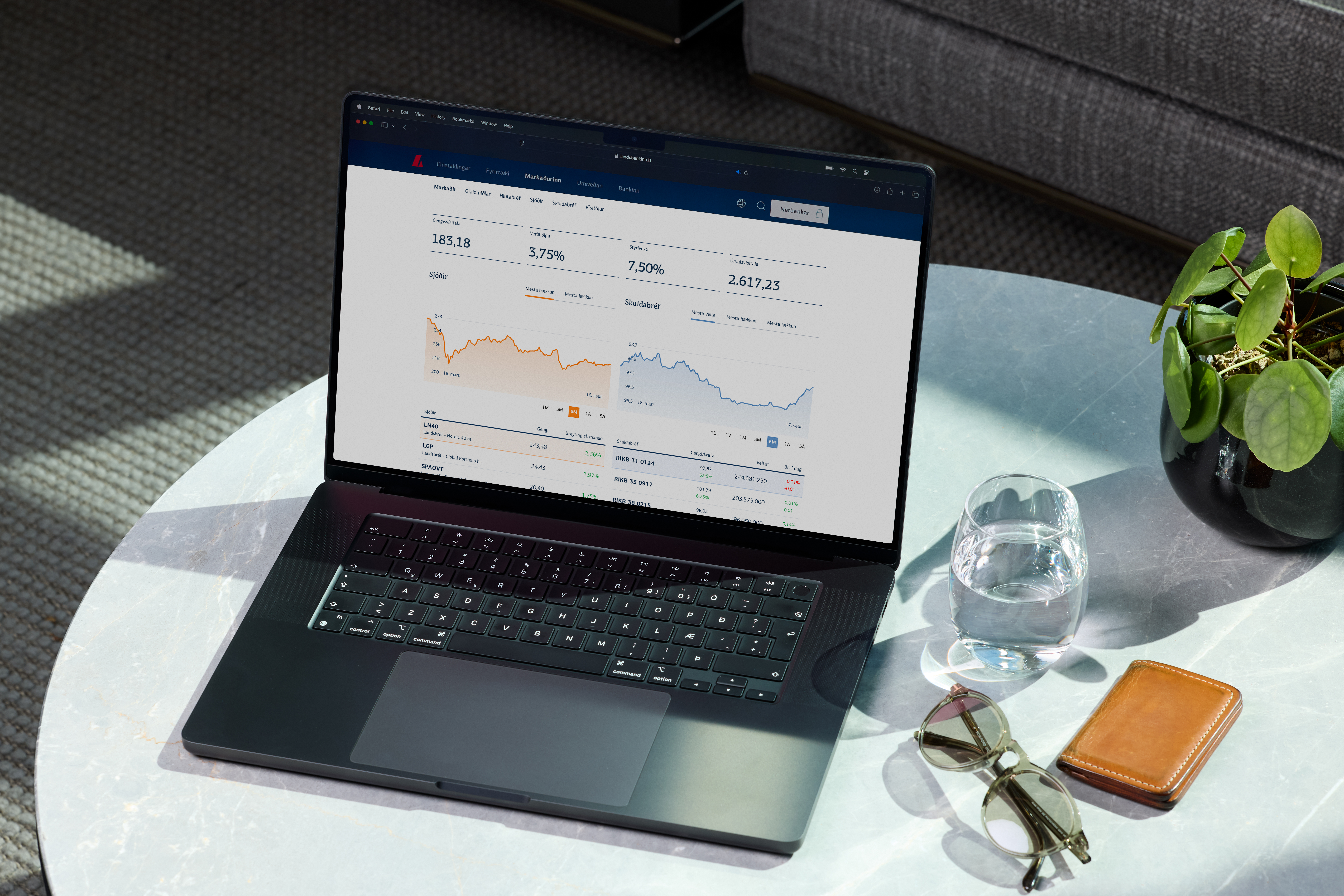 Í appinu og netbankanum getur þú sent beiðni um viðskipti með innlend hlutabréf og sjóði Landsbréfa hvar og hvenær sem er. Þú getur einnig fylgst með framgangi viðskiptanna, séð yfirlit yfir verðbréfaeign og viðskiptasöguna.