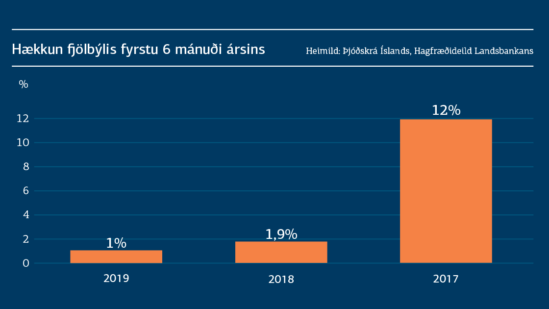 Árshækkun raunverðs er orðin hóflegri en áður. Þannig var raunverð fasteigna nú í júní um 0,2% hærra en í júní 2018. Hækkun raunverðs síðustu 12 mánuði er mun minni en árin tvö þar á undan. Samsvarandi tölur voru 4,1% fyrir júní 2018 og 25% fyrir júní 2017.