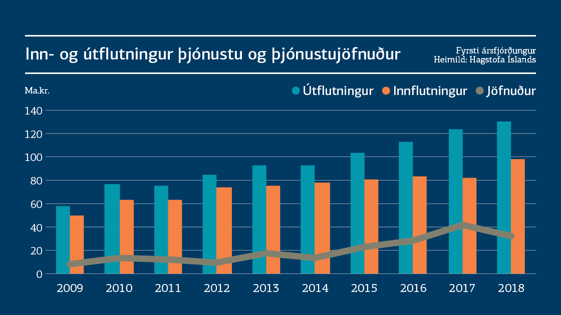 Hagsjá: Ferðalög standa á bak við aukinn inn- og útflutning þjónustu (PDF)