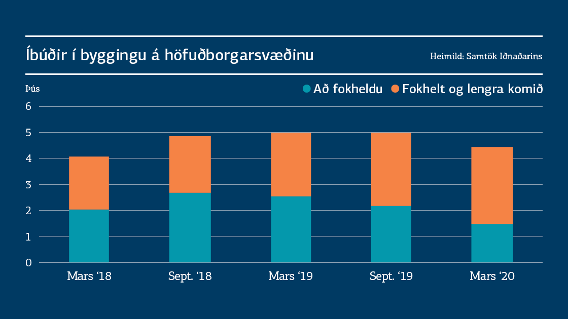 Fyrir helgi birtu Samtök iðnaðarins talningu á fjölda íbúða sem eru í byggingu á höfuðborgarsvæðinu og í nágrannasveitarfélögum. Alls eru nú tæplega 4.500 íbúðir í byggingu á höfuðborgarsvæðinu og fækkar þeim um 11% milli ára. Til samanburðar mældist aukning upp á 22% í marstalningu samtakanna fyrir ári síðan. Af þeim íbúðum sem nú eru í byggingu, eru tæplega 1.500 á fyrstu byggingarstigum en slík verkefni voru til samanburðar rúmlega 2.000 fyrir ári síðan.