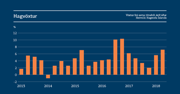 Á fyrri árshelmingi mældist 6,4% hagvöxtur en til samanburðar nam hagvöxtur allt árið í fyrra 4%. Hagvöxtur á fyrri árshelmingi var borinn af einkaneyslu, fjárfestingu og útflutningi.