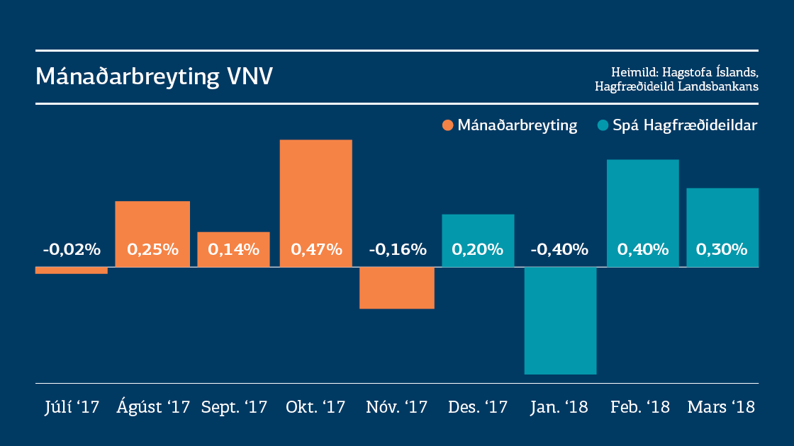 Við spáum því að peningastefnunefnd haldi stýrivöxtum óbreyttum í næstu viku. Verðbólga hefur haldist á þröngu bili í kringum 4% frá því í febrúar og horfur eru á nær óbreyttri verðbólgu á næstu mánuðum. Áfram má greina skýr merki um þenslu í hagkerfinu og nær óhugsandi að peningastefnunefnd telji tímabært að halda vaxtalækkunarferlinu áfram.