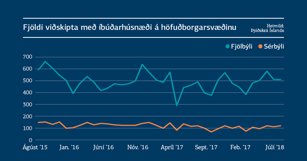Sé litið á breytingar á verði nýrra og eldri íbúða kemur í ljós að á tímabilinu frá júlí 2017 fram til júlí 2018 hafa nýjar íbúðir hækkað um rúm 4% en eldri íbúðir lækkað um 1%. Það gefur hins vegar ekki alltaf rétta mynd að bera einstaka mánuði saman þar sem sveiflur milli mánaða eru töluverðar.