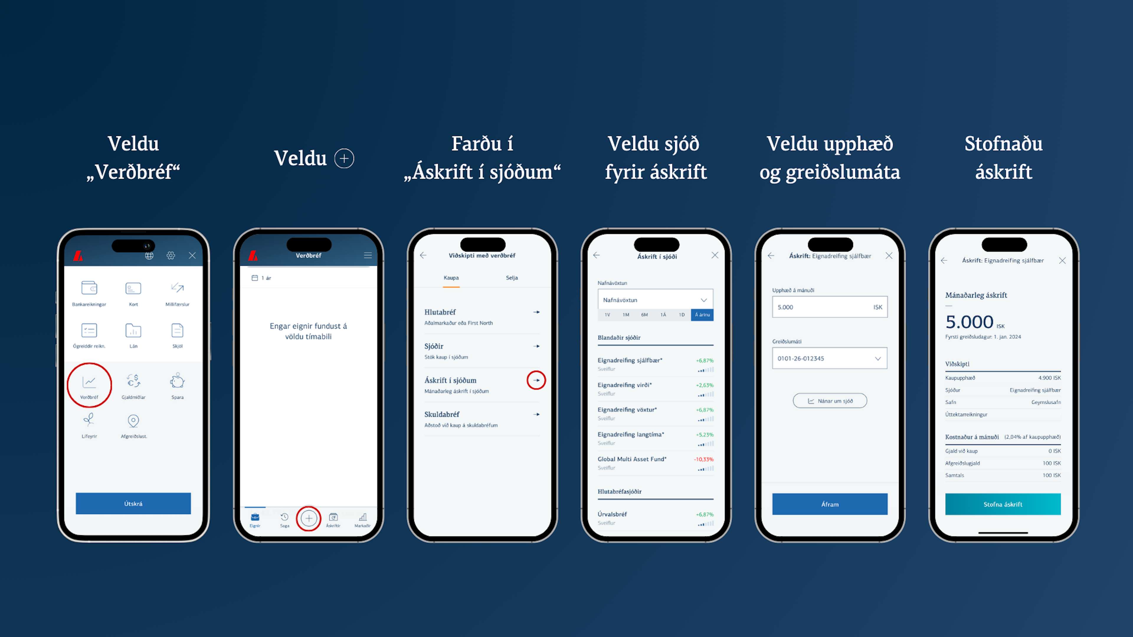 Það er auðvelt að stofna mánaðarlega áskrift í appinu, á l.is og í netbankanum undir „Verðbréf“.