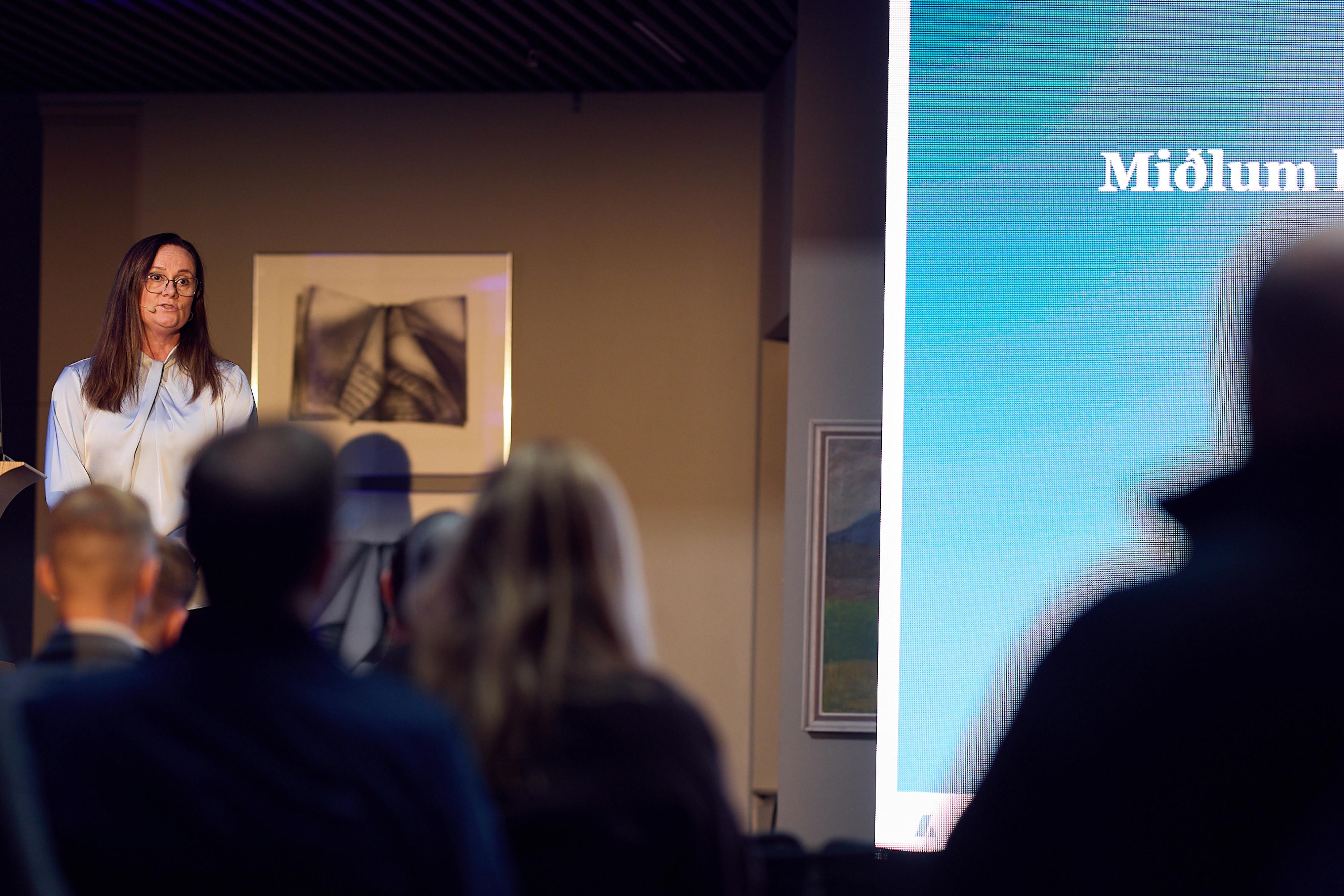 Arnheiður K. Gísladóttir, forstöðumaður á Fyrirtækjasviði Landsbankans, hóf fundinn á að fjalla um hvernig bankinn miðlar gögnum til sinna viðskiptavina sem þeir geta notað til að greina og bæta reksturinn. Mest af þeirri miðlun fer fram „undir húddinu“ í gegnum svokallaðar B2B og API-lausnir og birtist fyrirtækjum ekki í netbankanum heldur í gegnum bókhaldskerfi. Mikil áhersla hefur verið lögð á að efla þessar lausnir og þróa og nú nýta um 7.000 fyrirtæki sér þær að einhverju leyti. Bankinn tekur á móti yfir 13 milljónum fyrirspurna í gegnum þessar þjónustur hvern mánuð, eða um fimm fyrirspurnum á hverri einustu sekúndu. Gögnum er einnig miðlað með öðrum hætti til viðskiptavina, s.s. í netbankanum, yfirlitum og skýrslum.
